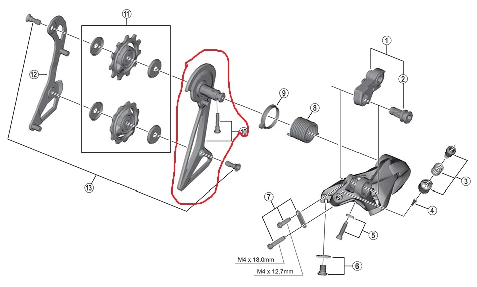 Shimano Dura Ace RD-R91000 Schaltwerk Leitblech aussen.