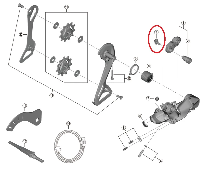 Shimano Dura Ace RD-R9250/Ultegra RD-R8150/Shimano 105 RD-R7150 Schaltwerk-Kabelführung.